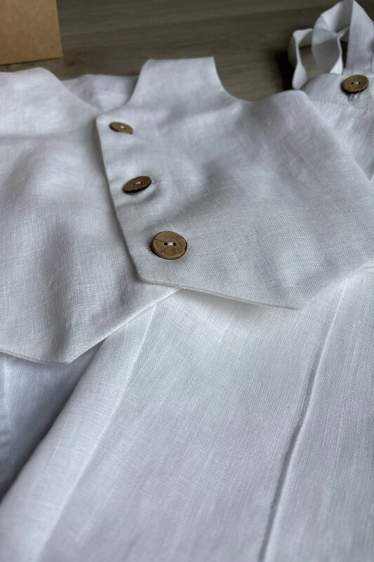 Handcrafted baby boy baptism outfit made from 100% OEKO-TEX® certified linen. Complete 4-piece set for formal occasions, suitable for babies and toddlers from 6 months to 2 years.