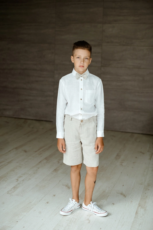 Complete the outfit with our boys’ linen shirts for formal occasions.