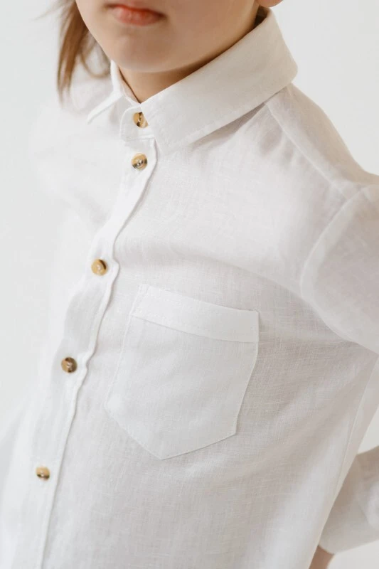 This boys’ white linen  shirt is made from 100% European linen and designed for formal family occasions. Suitable for weddings, baptisms, First Communion, and other special events, it offers a clean, classic appearance with breathable comfort.
