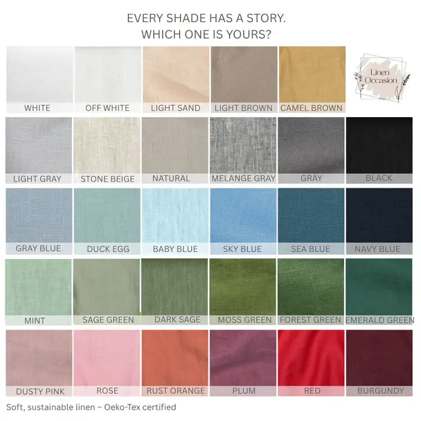Order linen fabric swatches in the exact colors you’re considering—feel the texture and choose confidently. Linen or cotton gauze.