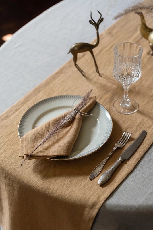 Available in a wide range of natural and muted shades, from earthy neutrals to soft pastels. The runner can be matched to different interiors or seasonal table settings and pairs well with coordinating linen tablecloths and napkins.