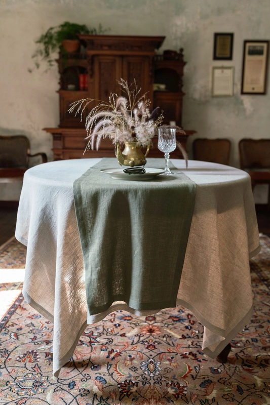 Handmade linen table runner crafted from 100% European linen. OEKO-TEX® certified, durable, and suitable for everyday dining or formal table settings.